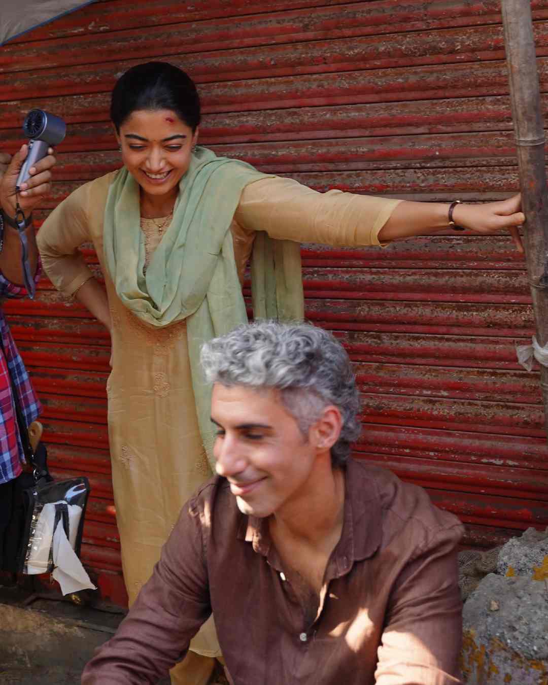 The actress and her co-stars were busy rehearsing their lines between takes in one of the photos Rashmika shared.
