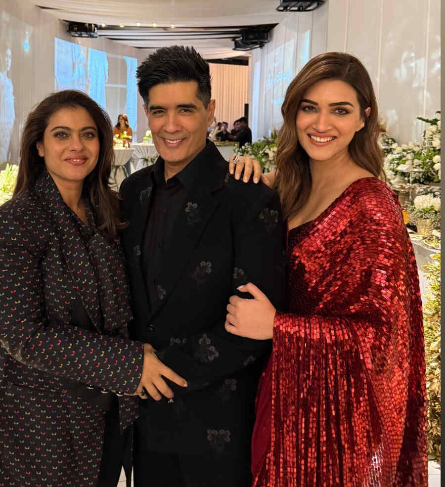 Do Patti stars Kajol and Kriti Sanon also attended the event. While Kajol donned a printed black pantsuit, Kriti shined in a sequined red sari, seemingly inspired by Kareena Kapoor’s Pooh from Kabhi Khushi Kabhie Gham (2001) and Sushmita Sen’s Chandni from Main Hoon Na (2004).