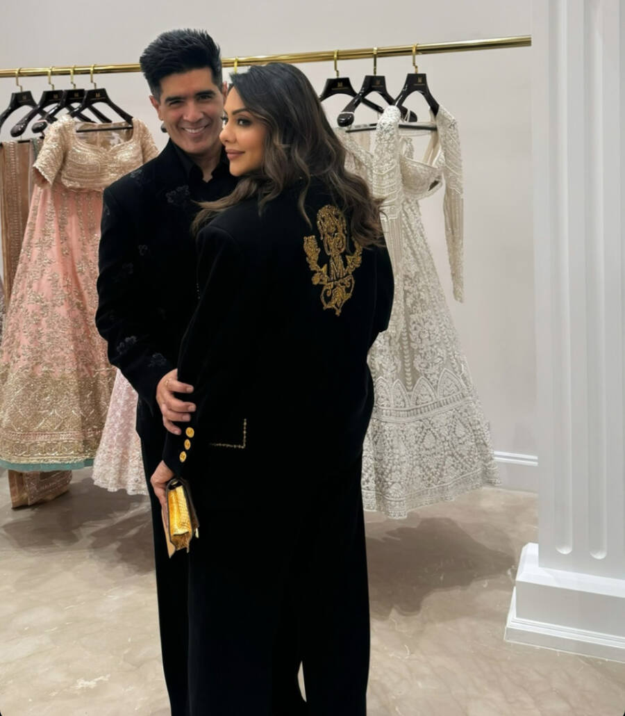 Gauri Khan’s custom-made Manish Malhotra emblem black suit made for a winning look. She paired it with a golden clutch and minimal accessories.