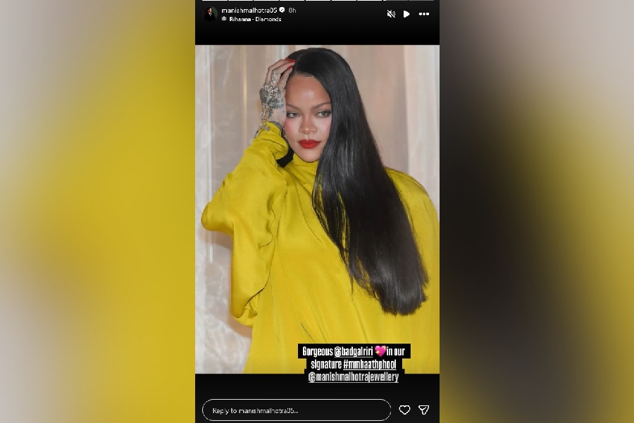 Sharing a photo of Rihana stunning in the haathphool on his Instagram stories, Manish wrote, “Gorgeous @badgalriri in our signature #mmhaathphool @manishmalhotrajewellery.”