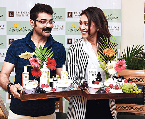 Prosenjit and Mimi Chakraborty dropped by at the city launch of international skincare brand Eminence at Solace on October 12. The Sunny Park wellness address offers three kinds of treatments with Eminence — the Anti-ageing Berries Ritual (Rs 4,000 for a session) with various kinds of berries and paprika to stimulate blood circulation and flush out toxins, the Stone Crop Brightening Peel Ritual (Rs 3,600 per session) for hyperpigmentation and skin brightening, and Bright Eyes Ritual (Rs 1,000 as a stand-alone treatment or Rs 750 if clubbed with any spa service) for under-eye problems, from dark circles to puffiness.