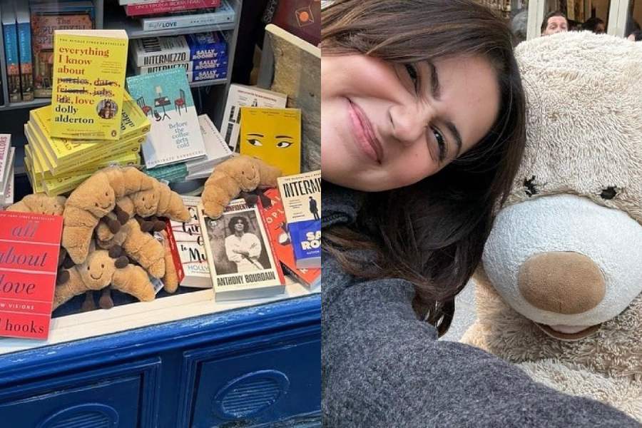 Aneet was all smiles as she explored books and posed with a teddy bear.