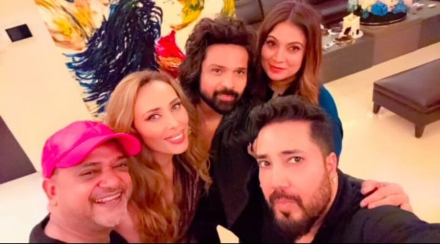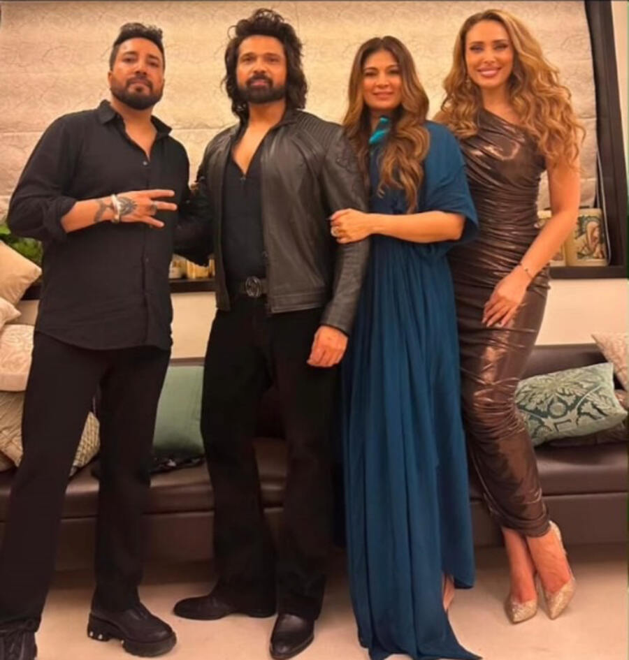 Himesh and Mika twinned in black at the birthday bash. The duo clicked a picture with Himesh’s wife Sonia Kapoor and Iulia, who looked stunning in a satin brown one-shoulder bodycon dress.