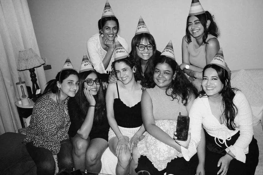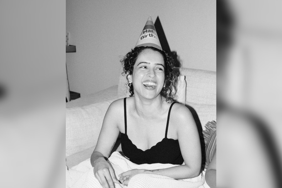 Sanya looked adorable in her strappy black sleeveless top and birthday cap, wearing a smile on her face.