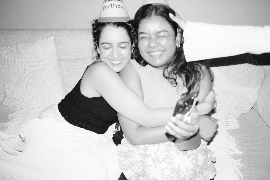 The actress cosied up with her friends on the couch, capturing a warm moment for a group photo.