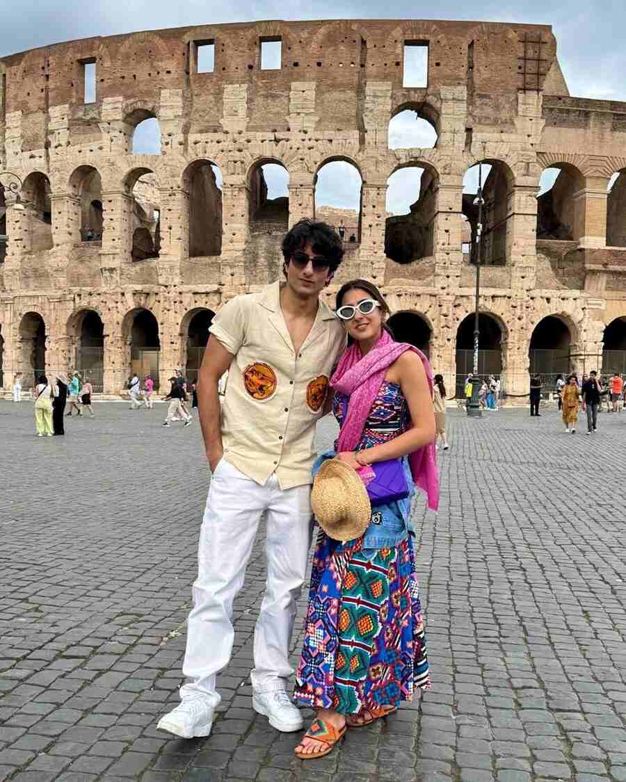 Sara posed with her brother in front of the Colosseum, an elliptical amphitheatre situated in the heart of Italy’s capital city. While Sara wore a blue printed dress with a purple shawl wrapped around her neck, Ibrahim sported a beige shirt, white trousers and matching sneakers.