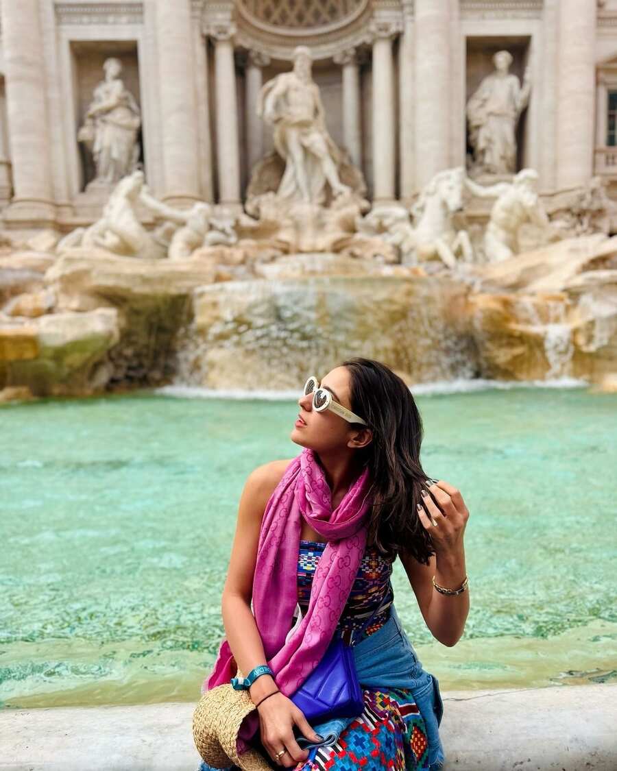 The Murder Mubarak actress flaunted her quirky shades and struck a pose in front of the Trevi Fountain.