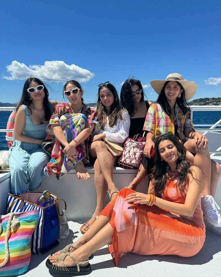 Sara cruised with her friends on a yacht during her Italian holiday. The 28-year-old actress kept it chic in a loose graphic maxi dress, complemented by heart-shaped wayfarers.