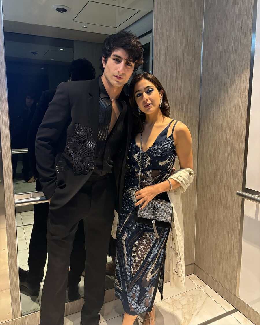 Ibrahim looked dapper in a black suit, while Sara made heads turn in an embellished blue sleeveless kurta.