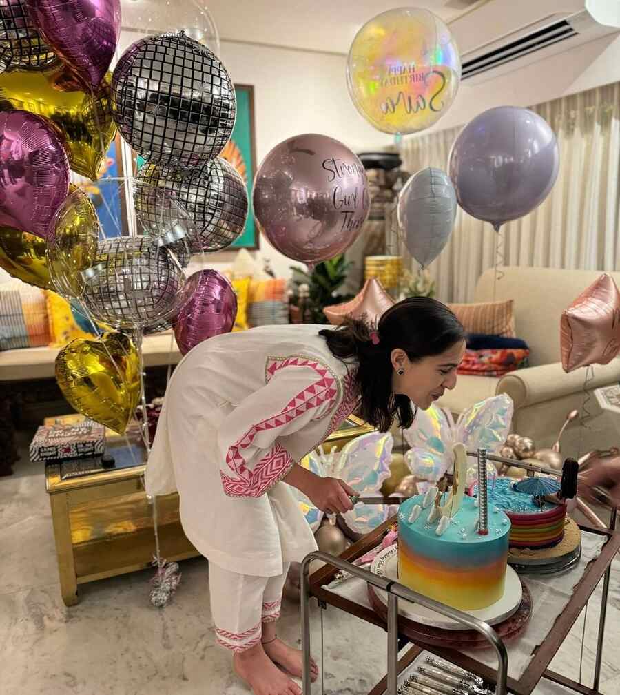 The 29-year-old actress, clad in a white-and-pink outfit, celebrated her birthday with friends and her mother Amrita Singh.
