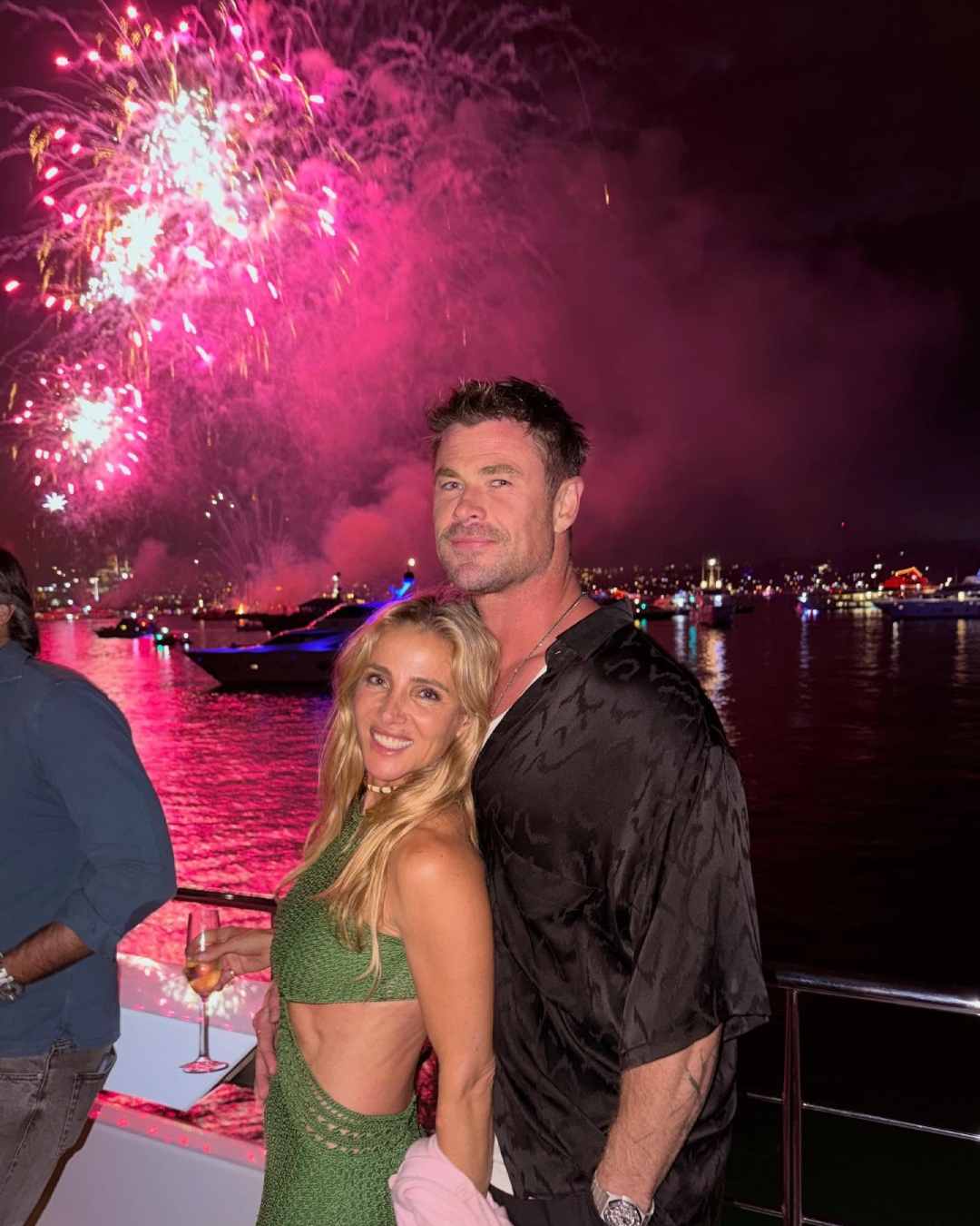 Chris Hemsworth spent quality time with his wife and family members at a river cruise where they posed for fun pictures and enjoyed fireworks.