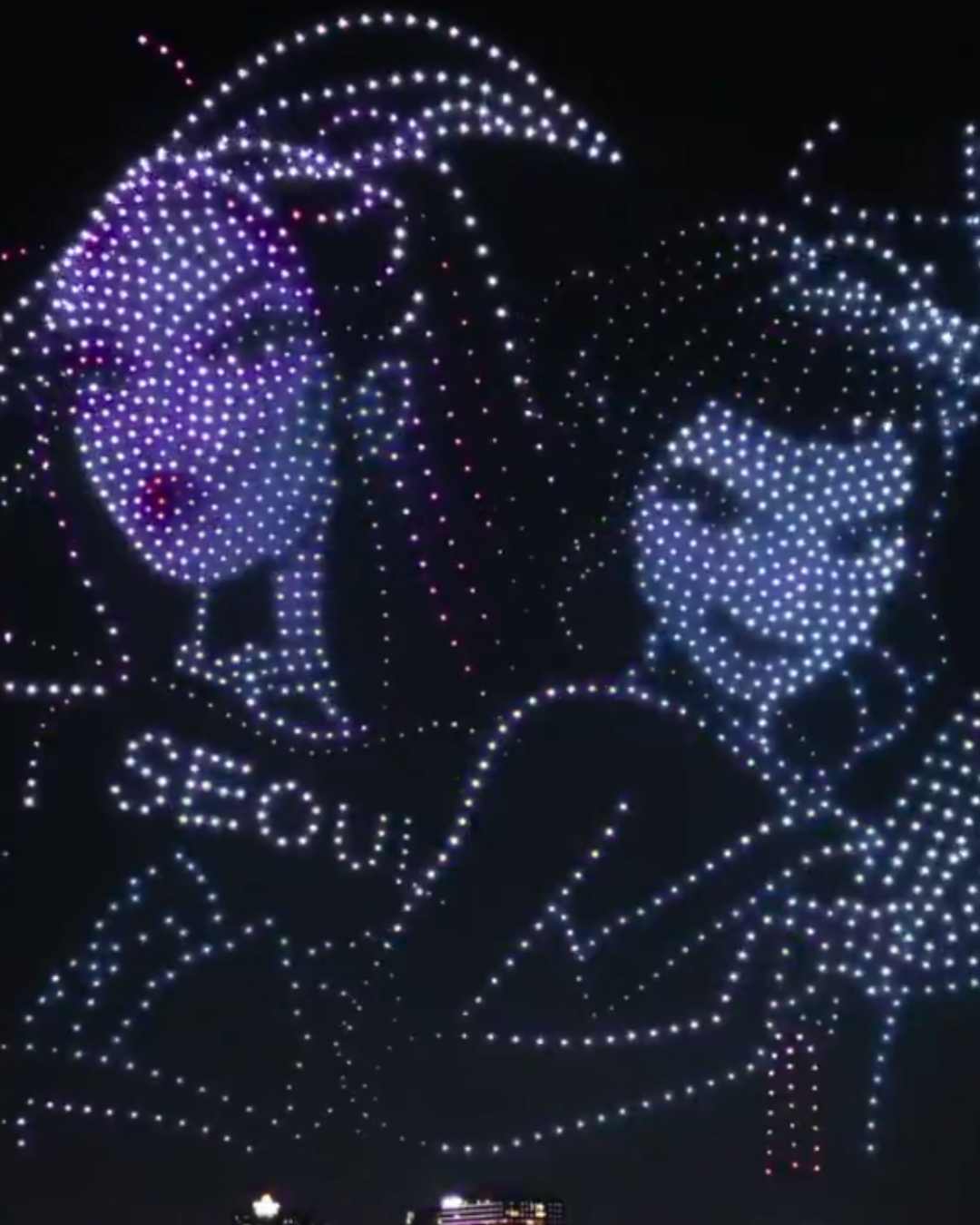 The drone show showcased glimpses of film characters — Rumi, Jinu, Zoey and Mira — glimmering in the sky above Seoul’s Han River.