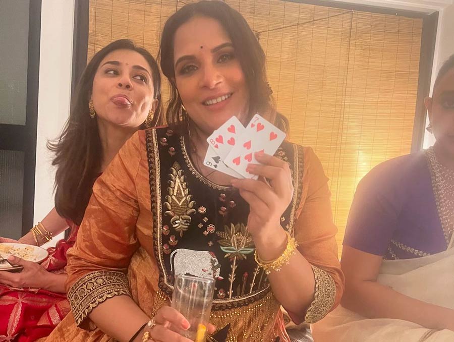 What Diwali party is complete without a little taash fun? Richa Chadha and Amrita Puri were caught in a candid moment playing cards at Dia’s house.