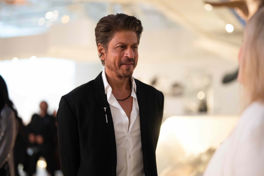 Shah Rukh beamed with joy while being engrossed in conversation with a guest at the museum.