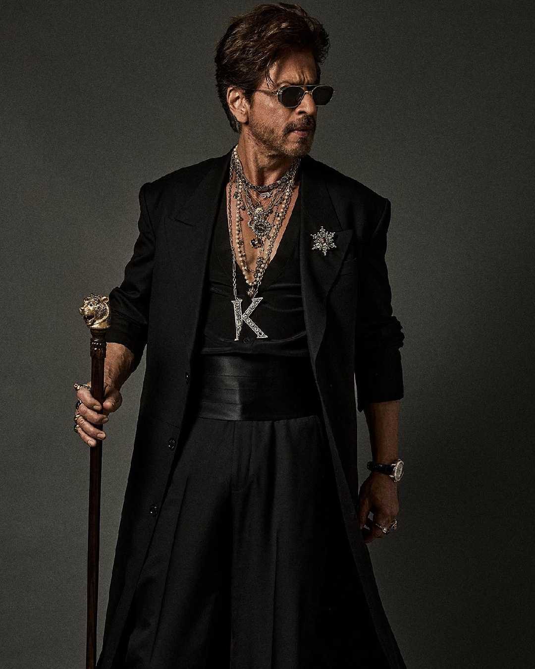 Shah Rukh also sported a set of ornate finger rings and carried a tiger-head walking stick.