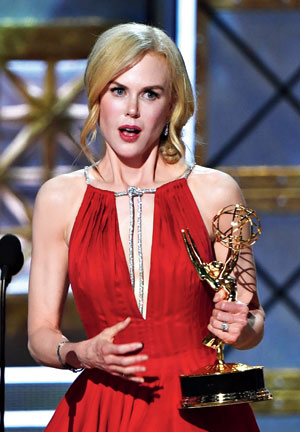 Nicole Kidman won her first Emmy (Outstanding Lead Actress in a Limited Series or Movie) for her role of Celeste Wright in HBO mini-series Big Little Lies. Kidman spoke passionately about how this award would help shine the light on issues of domestic violence.