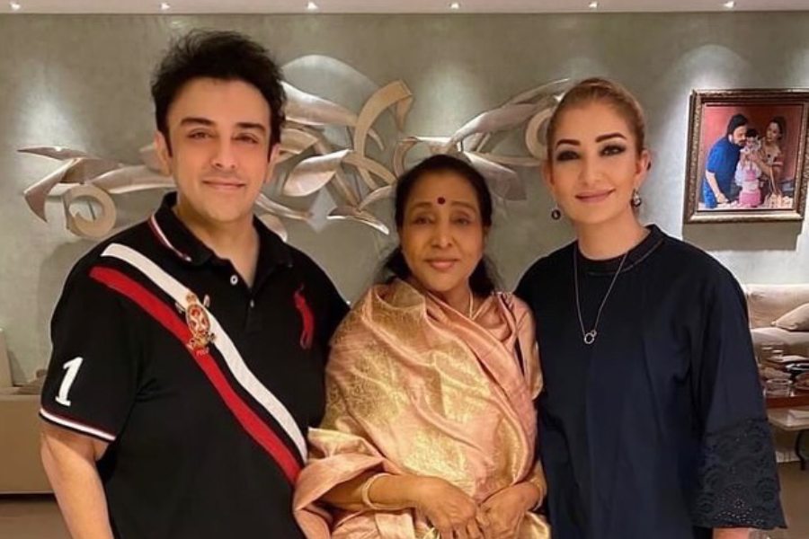 Veteran singer Asha Bhosle posed for a picture with Adnan and his wife Roya Faryabi.