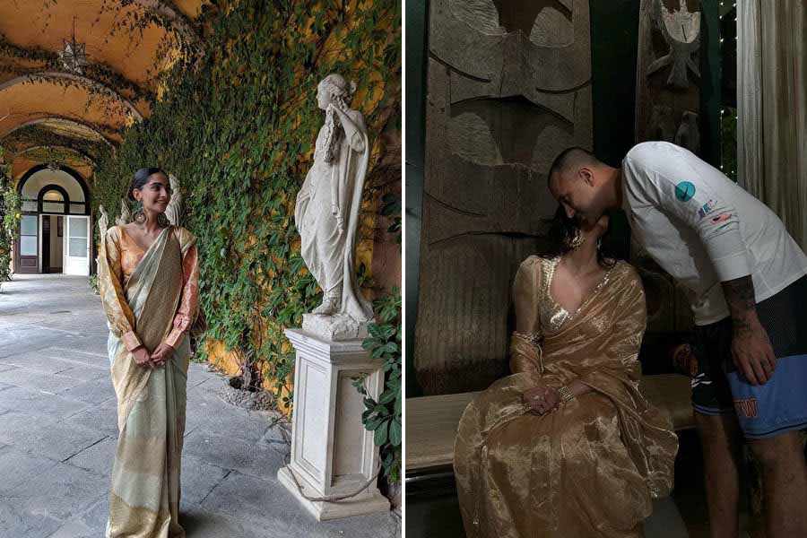 Actress Sonam Kapoor wished her husband Anand Ahuja on their sixth wedding anniversary on Wednesday by sharing a set of unseen pictures of them together. Here’s a look.