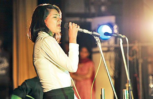 | Medha Nandi of St. Xavier’s College brought Adele and Lady Gaga alive on stage. Pictures: Anindya Shankar Ray |