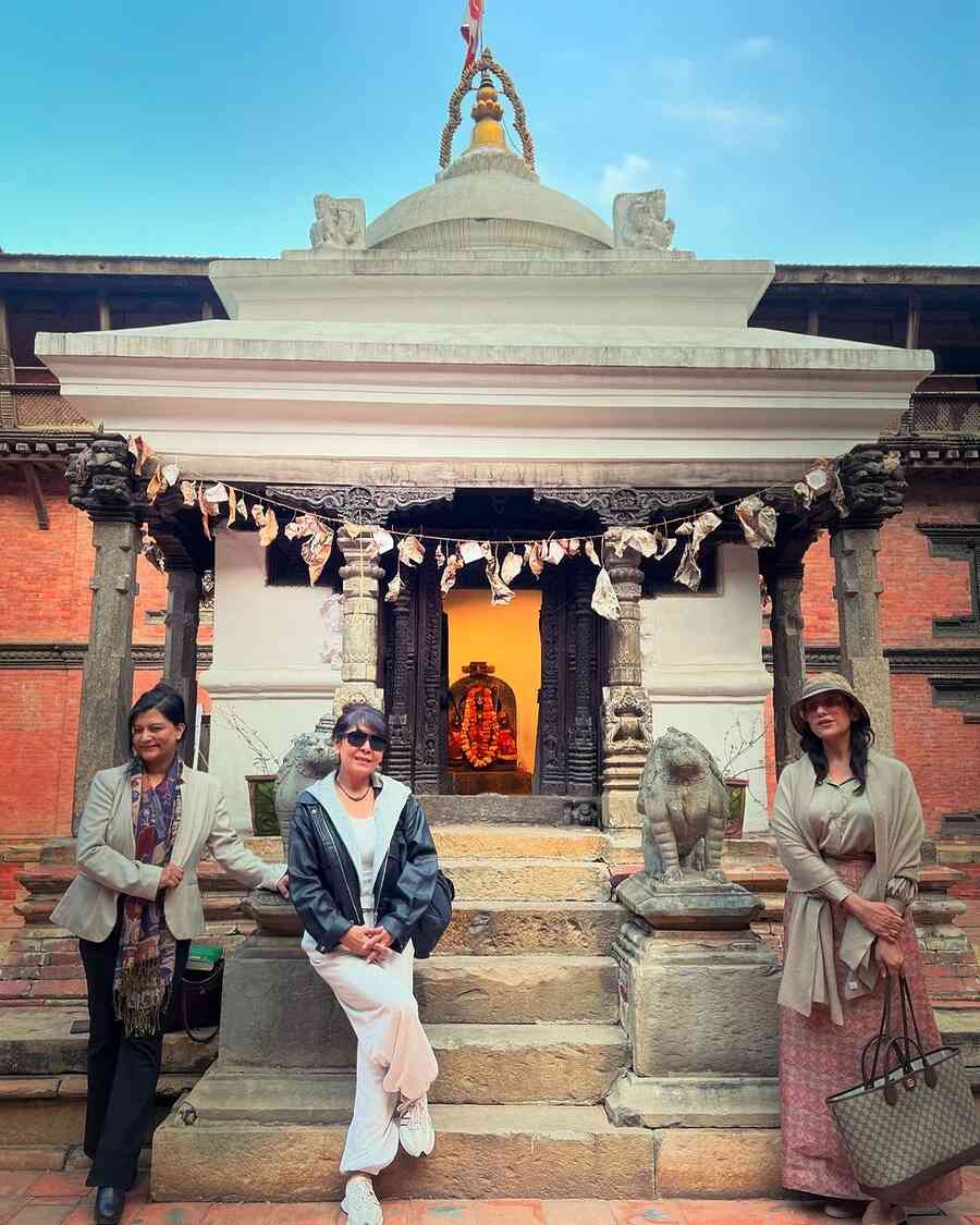 Heeramandi star Manisha Koirala recently spent time with her girl gang at a religious site. Clad in a traditional bakhu dress, Manisha posed for a picture with her friends in front of a shrine. “Take a little time to smile. Love hanging out with my gal pals...And I absolutely adore wearing #bakhu,” the actress captioned her pictures on Instagram.