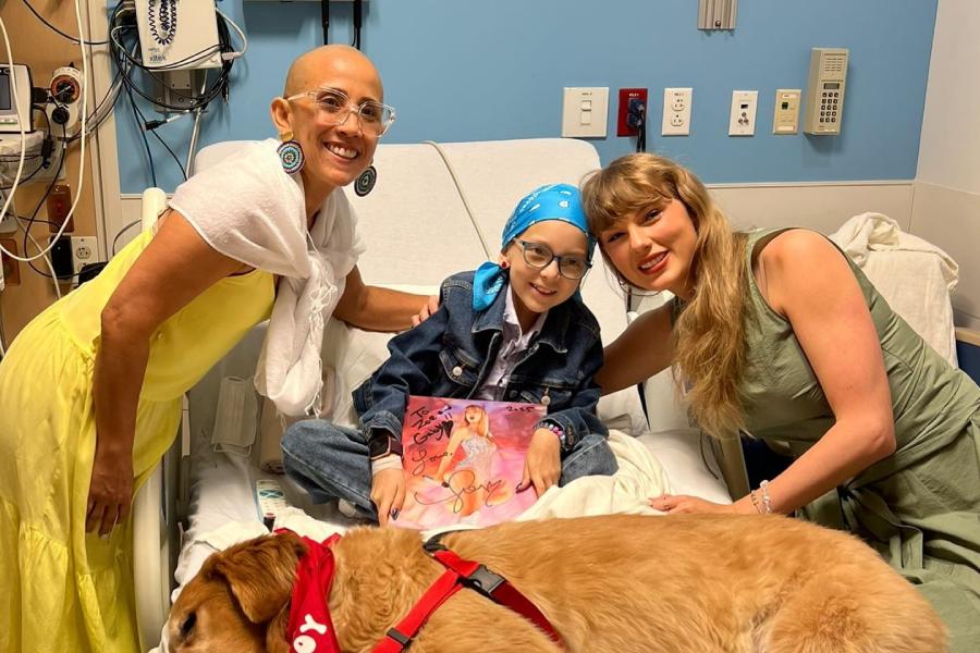 The Blank Space singer posed with a child and her dog on the hospital bed. She gifted everyone goodies including a picture book of The Eras Tour with a note written on the cover.