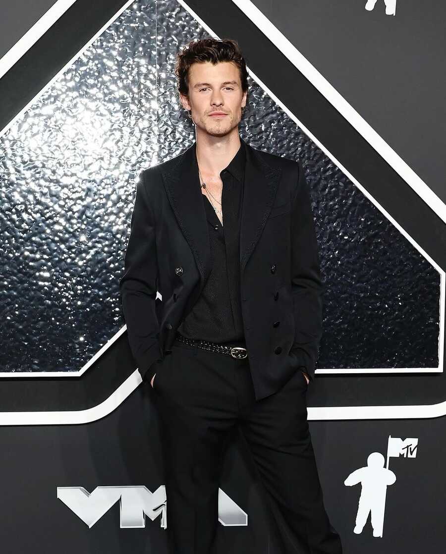 Shawn Mendes arrived in a woollen Dolce & Gabbana tuxedo with flared pants and a silk shirt.