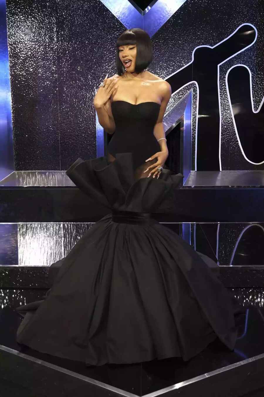 Grammy Award-winning singer Megan Thee Stallion, who made waves on social media this year with her song Mamushi, dazzled on the red carpet in a stunning black gown by Nicole+Felicia.
