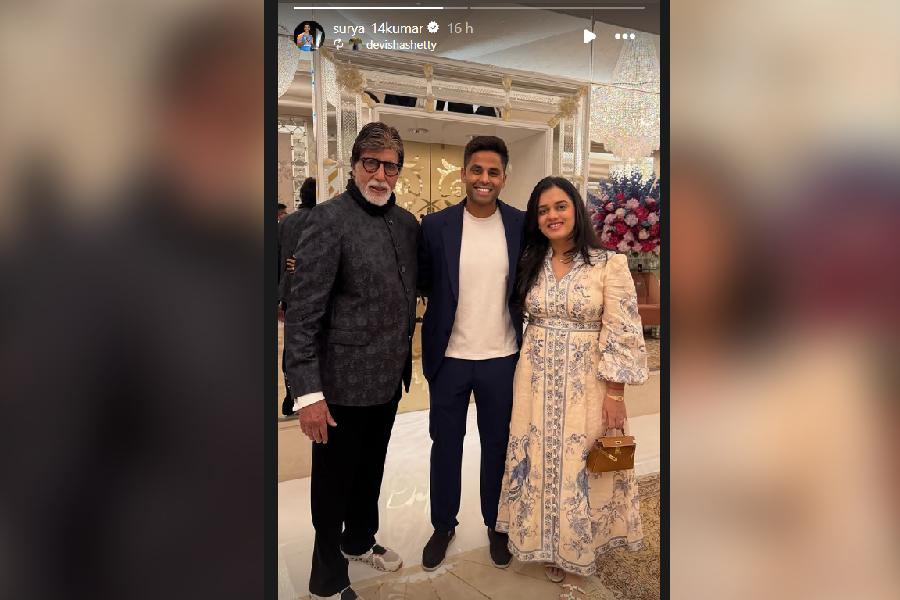 The cricketer on Monday shared a picture with Bachchan on his Instagram story. While the 83-year-old actor looked dapper in a grey-black suit, Yadav sported a navy-blue blazer over a white T-shirt. The photo also features the cricketer’s wife Devisha Suryakumar Yadav.