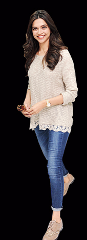 He was right. It was hard to take one’s eyes off the leggy lass. Someone yelled ‘take’ and Deepika walked past us, in a fitted skirt that ended just below the knee, a formal shirt and her brown hair neatly tied.
