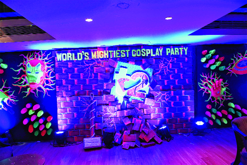 The entrance to the t2 Party set the mood for the evening with towering glow-in-the-dark pictures of iconic characters like Mogambo, James Bond, Professor Snape and Jack Sparrow flanking the stairs. The neon bulbs and wires glowing in the UV light added to the mood.