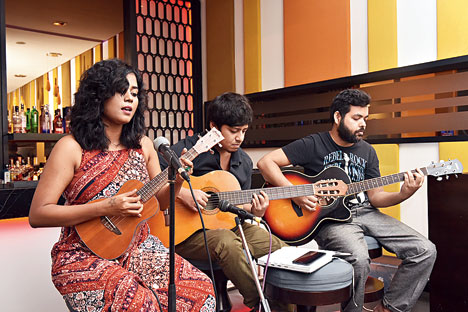 From then on, Mondegreen — meaning a misunderstood or misinterpreted word or phrase resulting from a mishearing of a song lyric — went on to perform Tea for Two by Doris Day, original songs Tales of Rust and Yoko’d and Hindi covers like Khaabon ke parinday, a mash-up of Louis Armstrong’s Give Me a Kiss to Build a Dream On and Hindi song Kaisi paheli, and Pehla nasha. Yes, there was something for everyone. They also played the Pink Panther theme inside Yoko’d song! “The idea is to offer a platform to the local talent. The first Wednesday of every month was selected to offer a break mid-week, at the beginning of the month, and keep youngsters going with energy,” said Sourav Ghosal, general manager, The Gateway Hotel Kolkata.