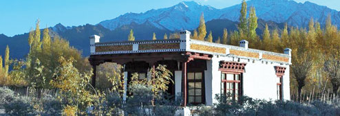 Surrounding this house are 10 independent guest cottages built in the traditional Ladakhi style using wooden beams and mud bricks, but equipped with all modern amenities inside.