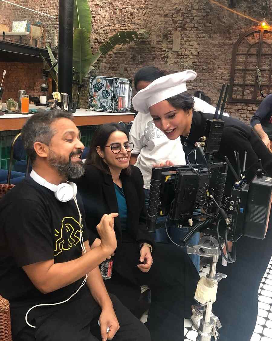 A candid shot captures Anand and Triptii reviewing scenes for the film. The romcom revolves around Akhil (Vicky) and Gurbir (Ammy) competing to prove who is the better father after Saloni (Triptii) gets diagnosed with a situation where two ovaries are fertilised during the same menstrual cycle by different partners.