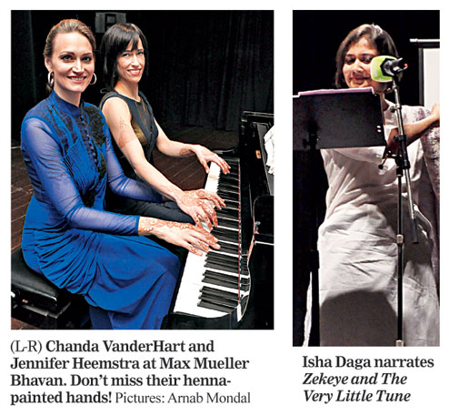 That wasn’t all. Isha Daga, a member of Kolkata Classics Club, joined the duo on stage and narrated Zekeye and The Very Little Tune, a children’s story from Cameroon. With help from the piano and a tambourine, the trio easily managed to get the little ones in rapt attention.