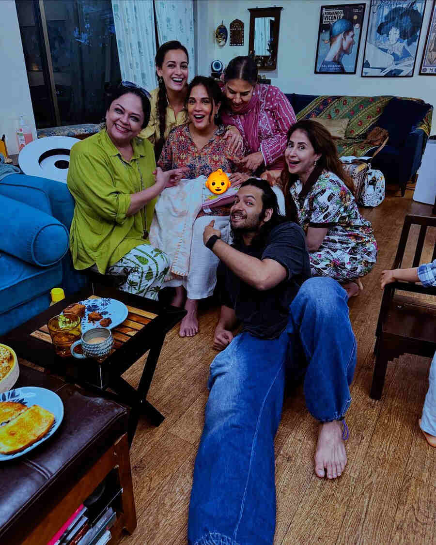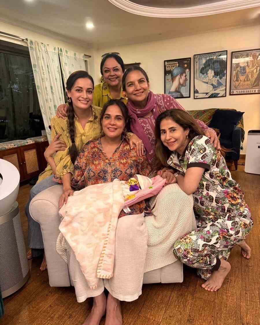 A group picture shows Richa sitting in the middle with her daughter on her lap, surrounded by Tanve, Urmila, Shabana and Dia. Richa's husband, Ali Fazal, poses in the front. “An evening drenched in rain and love, with piping hot khaalas/maasik and sabudana wadas. How lucky is this little girl to be blessed and touched by the most loving and the very best,” reads the caption to Richa’s post.