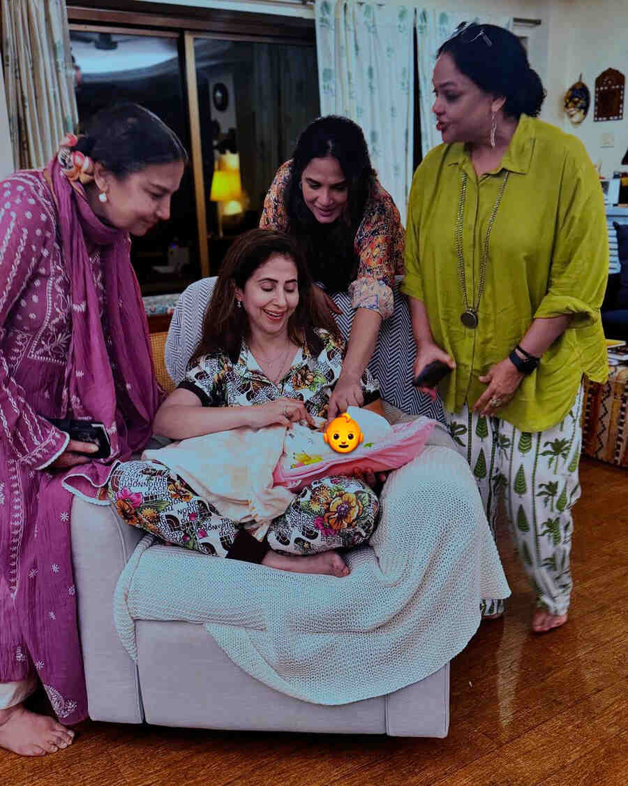 In one of the pictures, Urmila sat with the baby on her lap, surrounded by Tanve, Shabana and Richa. Saba Pataudi, Radhika Apte and Renuka Shahane also reacted to the post.