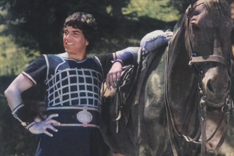 Manmohan Desai’s 1977 period action drama stars Dharmendra as Dharam, a fearless, big-hearted warrior raised in a royal household. Dharam embodies loyalty and courage. His bond with Jeetendra’s Veer, his twin brother who gets separated from him at birth, forms the emotional backbone of the story.