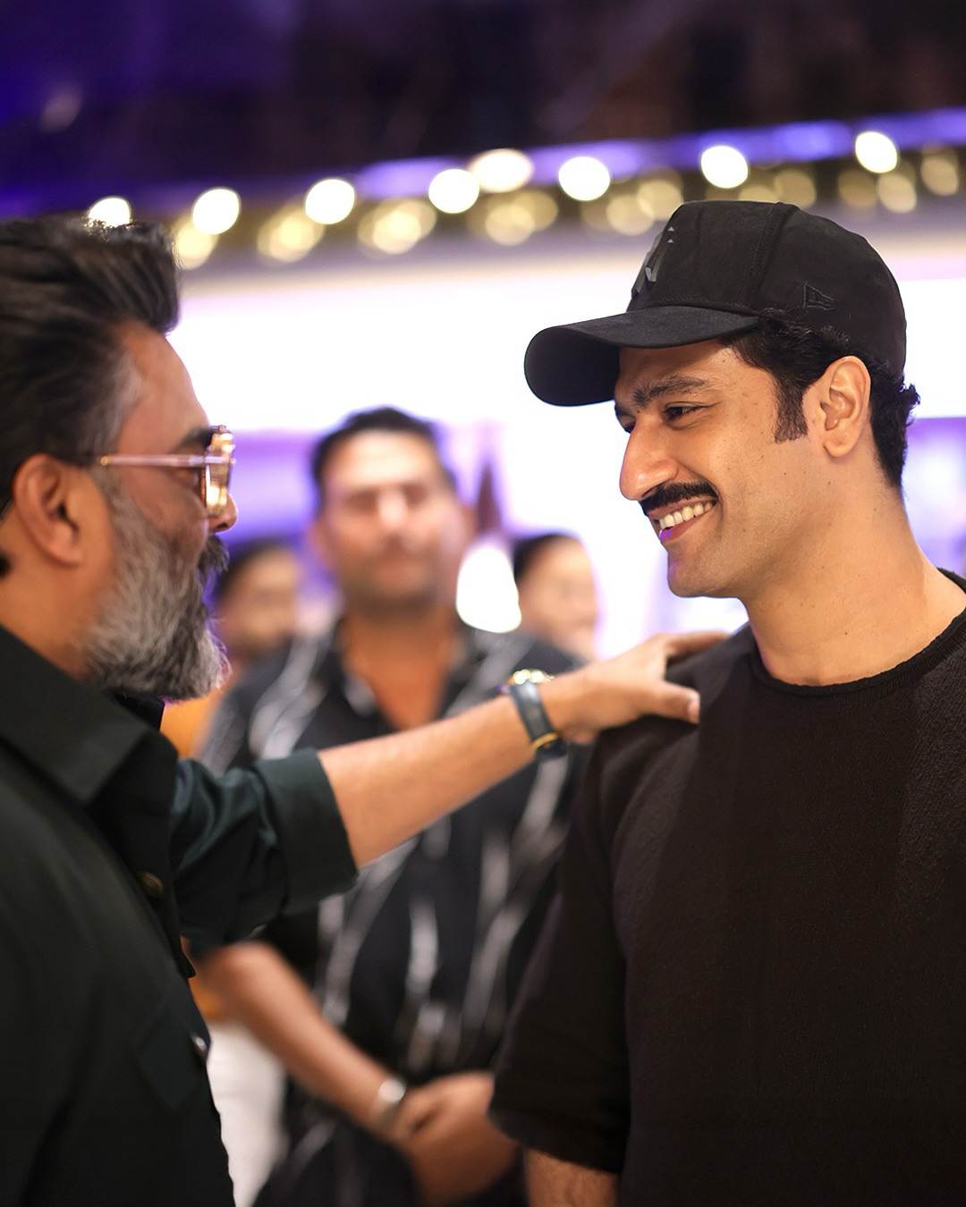 Vicky Kaushal sported a simple and comfortable look at the premiere. He was spotted engrossed in conversation with R. Madhavan.