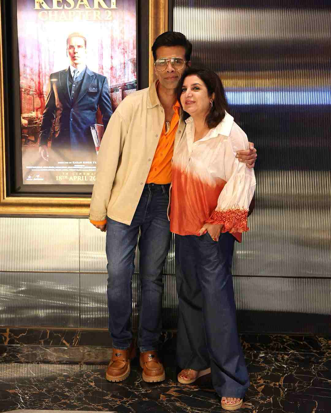 Karan Johar posed with filmmaker-choreographer Farah Khan, who attended the event in a loose-fit ombre shirt and denim.