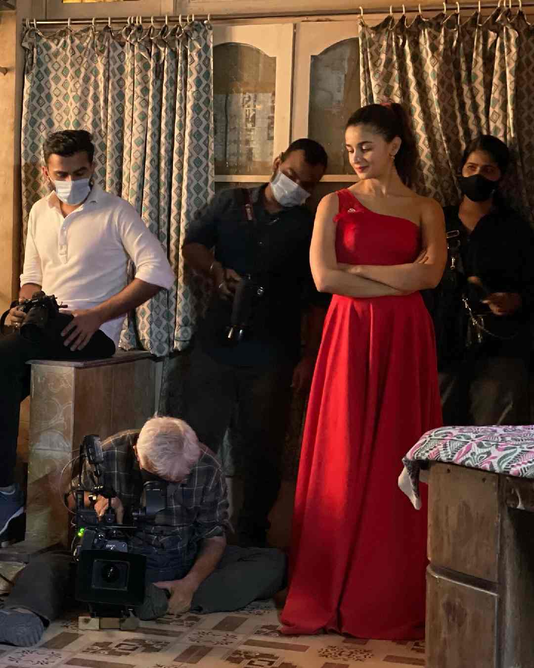 The photos and videos capture Vijay and Alia’s candid moments on the film set along with other cast and crew members.