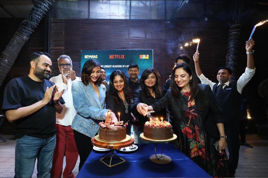 Actor Vijay Varma, who played Captain Sharan Dev, the pilot-in-command of IC 814 in the series, posed alongside the show’s director Anubhav Sinha and Netflix India’s content head Monica Shergill. All of them made an aviation sign with their hands as a nod to the show’s premise.