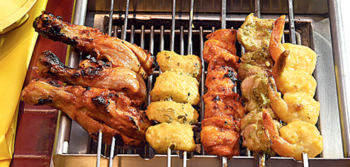 Grills on the table: The superstars of the starters menu are the smoky, hot kebabs brought to the grills on your table, unlimited! From Tandoori Gobi Aur Anaras (skewered cauliflowers and pineapple) and Khade Masale Da Paneer Tikka (barbecued paneer marinated with a coarse spice mix) to Lasooni Jhinga (prawns soaked in garlic sauce) and Tandoori Kukkad Tangri (grilled chicken leg pieces) — it sure is a robust feast for kebab lovers. t2 alert: The kebabs are so delicious, you might forget that there’s an entire main course and desserts waiting to be feasted on.