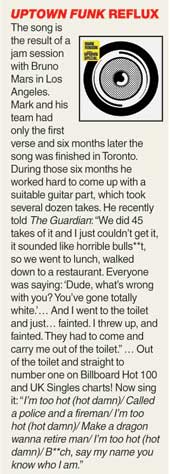 Three Grammys. Two Brit Awards. The year’s biggest hit, Uptown Funk, which has notched up close to 433 million hits. DJing at the weddings of Tom Cruise-Katie Holmes and Paul McCartney-Nancy Shevell. Producing hits for Lily Allen (Littlest Things), Robbie Williams (Lovelight), Amy Winehouse (You Know I’m No Good), Christina Aguilera (Slow Down Baby) and Adele (Cold Shoulder). Childhood friends with Sean Lennon.