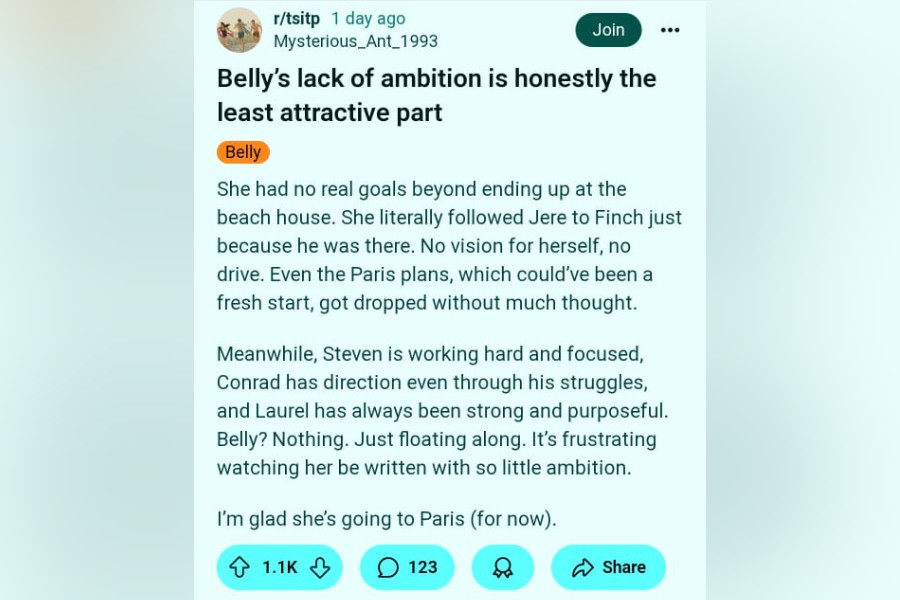 Other than chasing boys in Cousins Beach, the place where the story is set, what exactly defines Belly? Fans are unable to comprehend why the only question deserving of a 21-year-old educated woman’s energy is which man to marry. What about college? Career? Passion? Goals? For Belly, it’s either crying, pouting or chasing summer love.