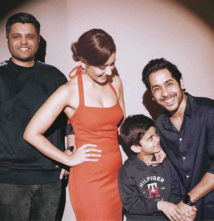 On her shoot, the actress was joined by her brother Raunaq Khanna (left), her nephew (right bottom) and actor Savant Singh Premi (right).