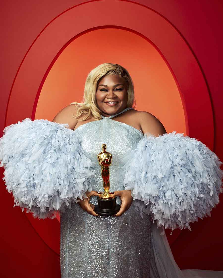 Da’Vine Joy Randolph, who played a grieving mother in Alexander Payne’s The Holdovers, with her best supporting actress trophy.