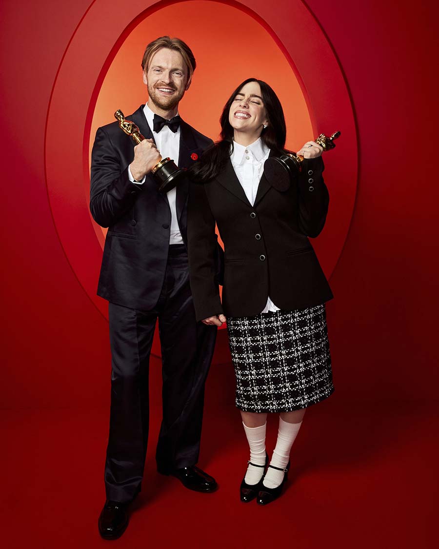 Brother-sister duo Finneas O’Connell and Billie Eilish with the Oscar for best song for What Was I Made For? from Barbie. They had previously won an Oscar in the same category for No Time To Die in 2022.
