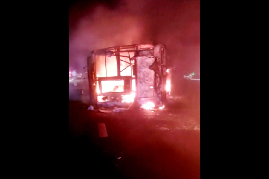 The private bus was on its way from Nagpur to Pune when it rammed into a divider around 1.30 am at Pimpalkhuta village near Sindkhedraja in Buldhana, around 134 km from here, they said. Eight others, including the bus driver and its cleaner, survived the tragedy as they managed to come out of the burning vehicle through broken windows, the police said, adding that the driver was being interrogated and the process of arresting him was underway.