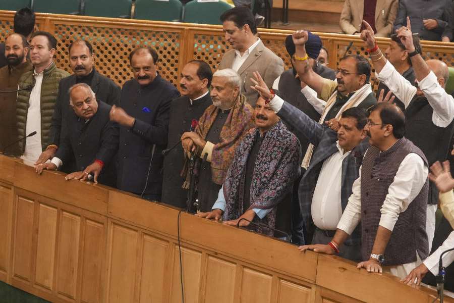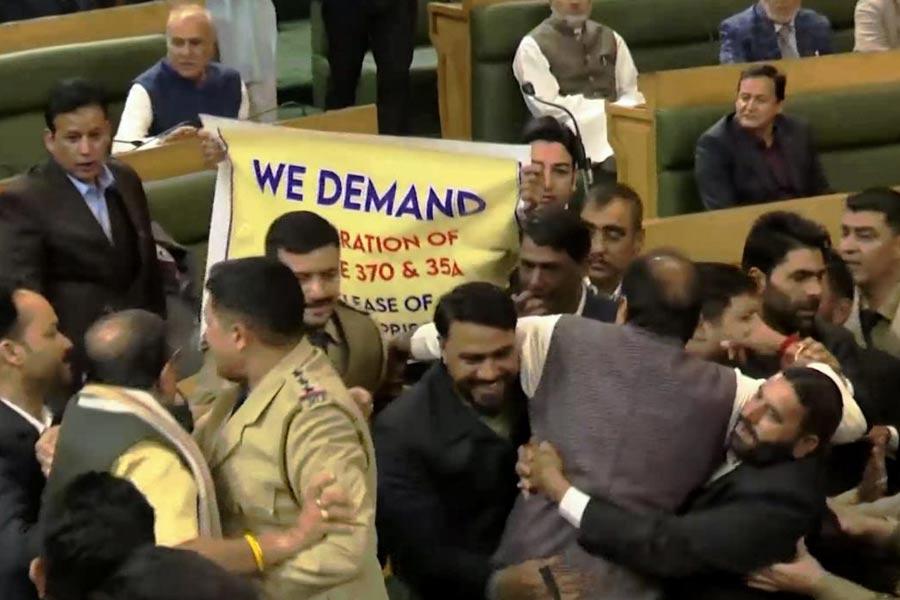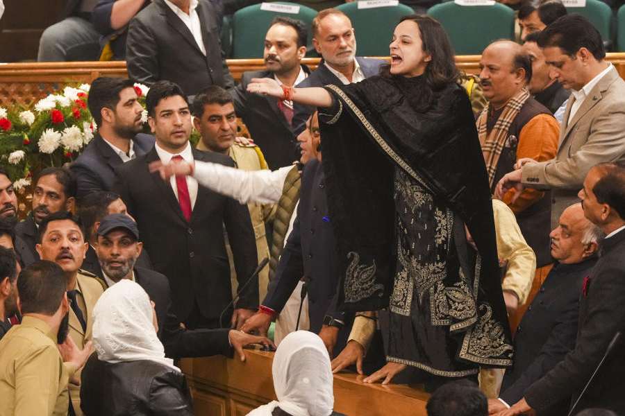When BJP MLAs once again stormed the well, the Speaker ordered their eviction, sparking a physical altercation between the BJP members and assembly marshals. “They deserve it, throw them out,” he directed, his authority challenged by the intensity of the confrontation. In a scene straight out of a movie, the lone BJP woman MLA, Shagun Parihar, climbed onto a table, and female marshals were summoned to handle the situation. As BJP MLAs resisted their forced eviction, blows were exchanged, and three members were eventually marshalled out amidst thunderous table-thumping from the treasury benches. The verbal clashes continued even outside the well, with NC members chanting, 'Jammu Kashmir ki awaaz kya, (Article) 370 aur kya,' while BJP MLAs countered with cries of 'Bharat Mata ki Jai.'