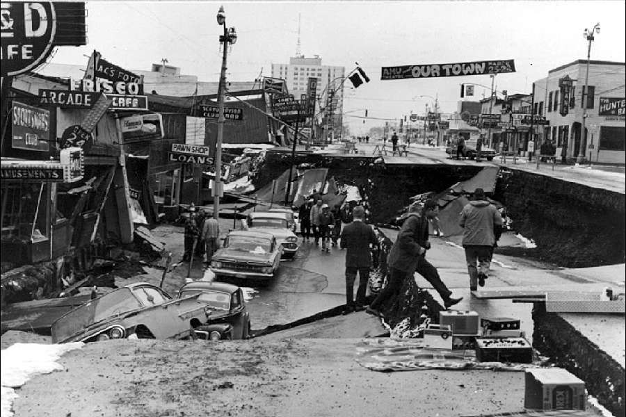 In 1964, a 9.2 magnitude earthquake jolted the Alaska's Prince William Sound, lasting for almost 5 minutes. More than 130 people were killed in the largest recorded earthquake in the U.S. and subsequent tsunami. There were huge landslides and towering waves that caused severe flooding. The event was followed by thousands of aftershocks for weeks after the initial quake.
